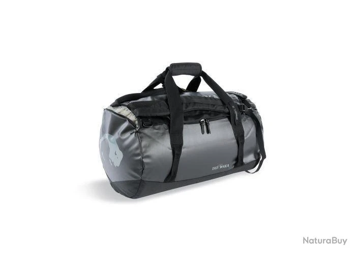 Le sac de voyage indestructible de Tatonka. Grâce à sa grande ouverture, le sac se charge facilement et les poignées des deux côtés facilitent le maniement, en particulier du grand Barrel.