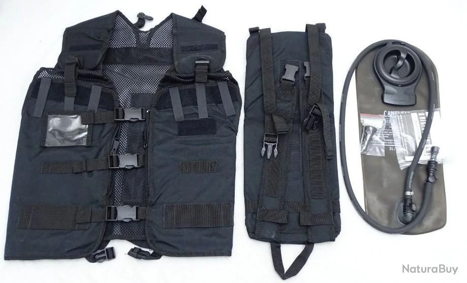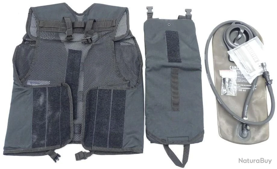 Comprend le gilet SWAT, le réservoir de 3 litres et le sac pour insérer celui-ci.