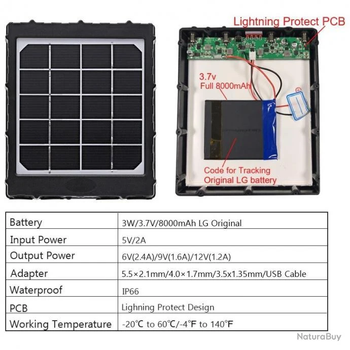 Chargeur solaire 6v/9v/12v 8000mAh, WG8000, pour totes Cameras IP,Camera de Chasse