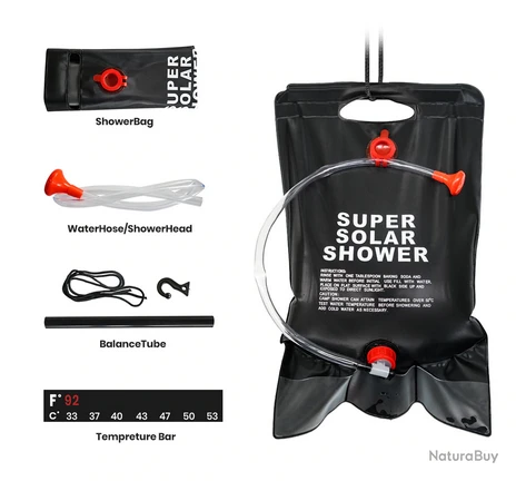 Cette douche solaire de camping a une grande capacité d’eau de 20 litres, assez d’eau pour plusieurs douches.