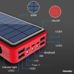 Power Bank 80 000mAh Solaire – Rouge – Livraison Gratuite Et Rapide