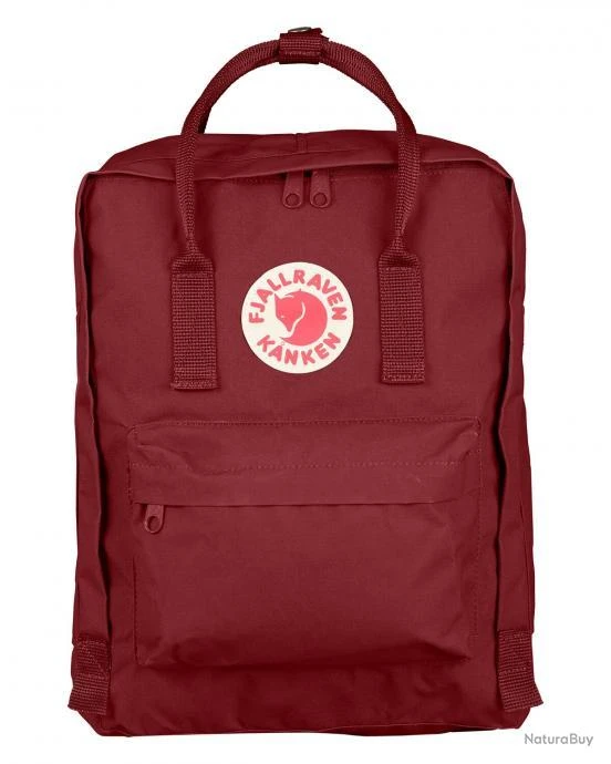 Sac à dos Fjällräven Kanken en tissu Vinylon robuste avec fermeture éclair permettant d’ouvrir complètement tout le compartiment principal. Coussin dans le dos amovible, petite poche avant, bretelles réglables et poignée de transport sur le dessus. (Le sac à dos sera livré sans contenu)