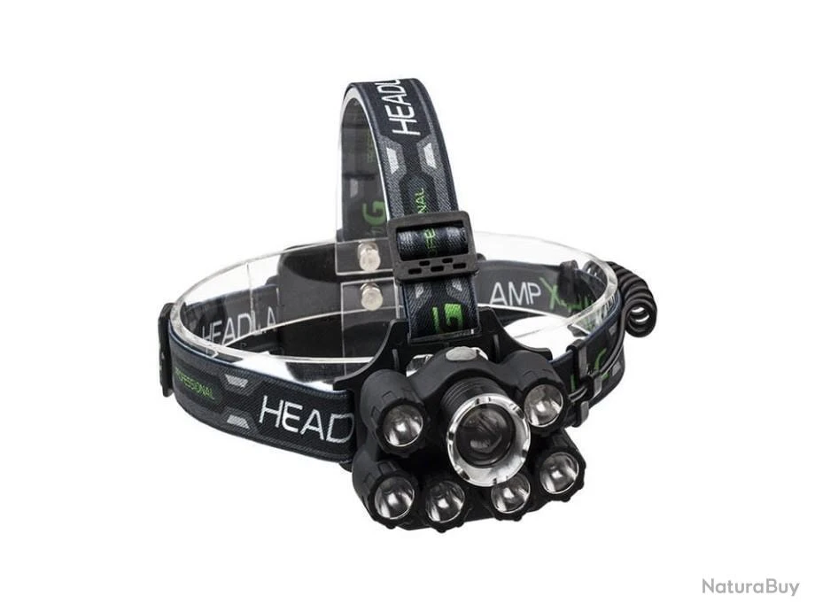 Lampe frontale 9x LED avec 2x UV XM-L T6 + ZOOM + Feu Arrière