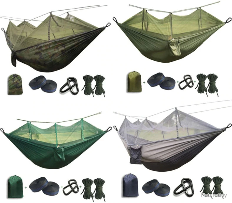 Hamac avec moustiquaire, 260cm x 140cm, 2 sangles d’attache de 2m.