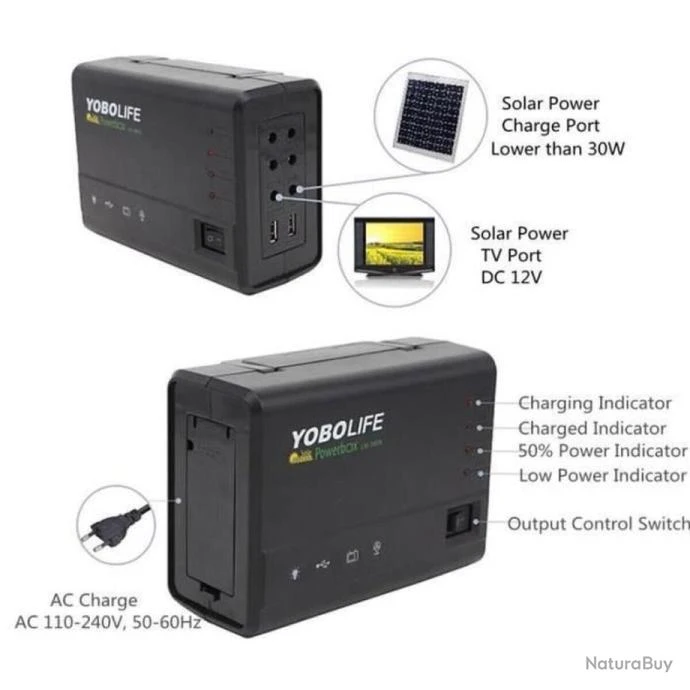 * Batterie plomb-acide scellée rechargeable intégrée 12V 5A, chargez votre téléphone, ventilateur USB, ampoule et autre.