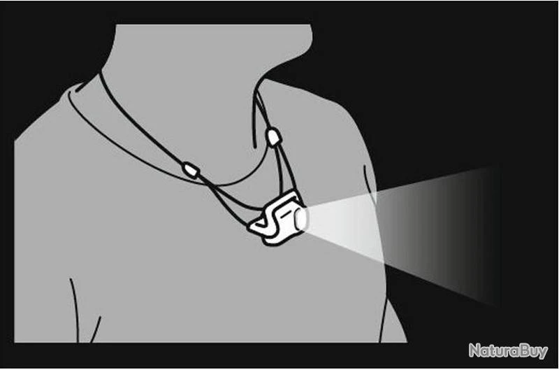 – Lampe pouvant être inclinée vers le haut pour voir devant soi lorsqu’elle est portée autour du cou.