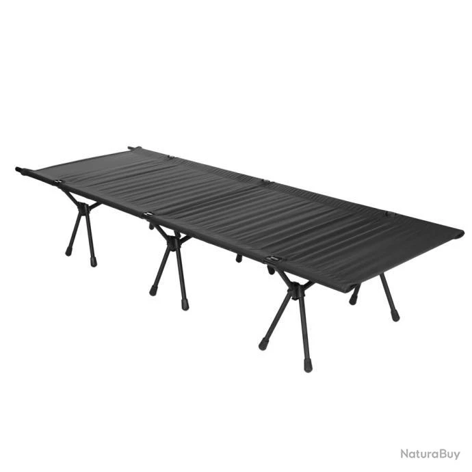 Ce lit de camp haut de gamme noir est très solide grâce à sa structure en aluminium.
