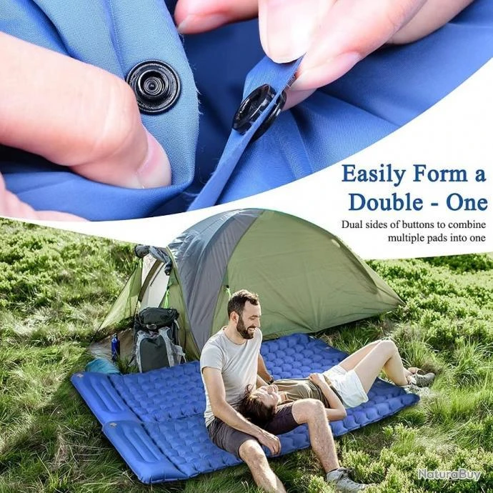 FAIRE EST UN LIT DOUBLE: Avec des boutons sur le côté, vous pouvez facilement en attacher un à un autre matelas de sol et en faire un lit double et rester avec votre famille. Vous pouvez facilement l’emporter partout avec vous et il est idéal pour les activités intérieures et extérieures. Particulièrement adapté au camping familial. La très petite taille du tapis peut économiser beaucoup d’espace et le matériau confortable peut vous faire profiter d’un bon sommeil pendant le voyage!
