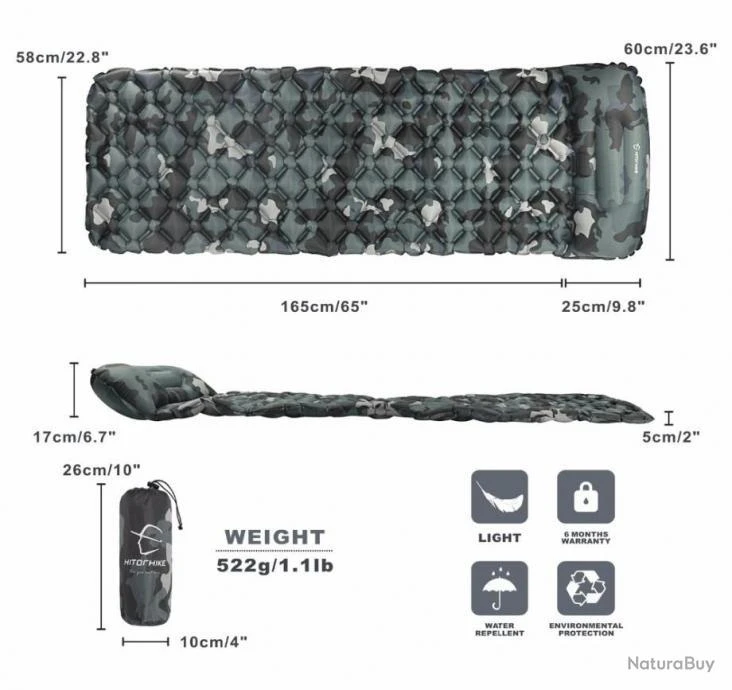 – Taille après remplissage: 190*60*5 cm(long * large * épais), poids seulement 450g, débarrassez-vous du sac à dos lourd