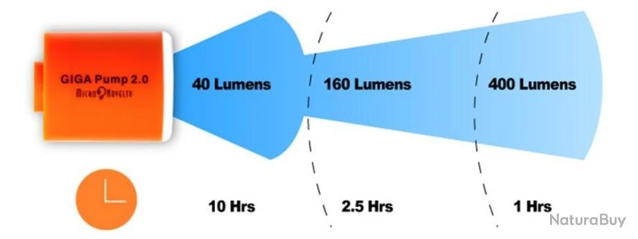 La plus grande amélioration est que la GIGA pompe 2.0 est équipée d’une lanterne super brillante avec une luminosité entre 40 lm et 400 lm. Il dispose de trois niveaux d’éclairage. La pompe GIGA 2.0 a une autonomie de batterie allant jusqu’à 10 heures, offrant plus de commodité pour votre vie extérieure et quotidienne.