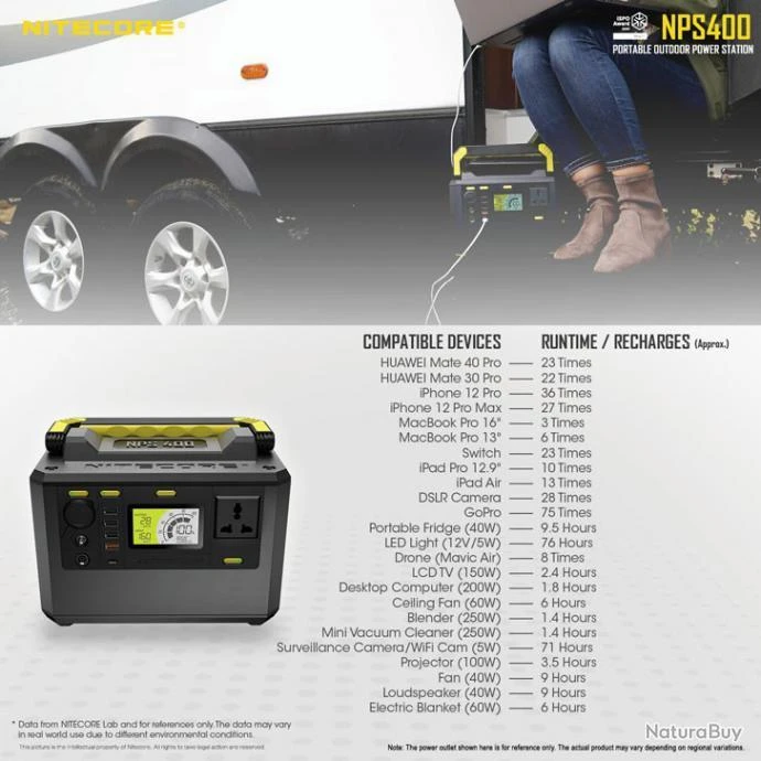 - Capacité : 421Wh (10,8V – 39Ah / 117 000 mAh).
