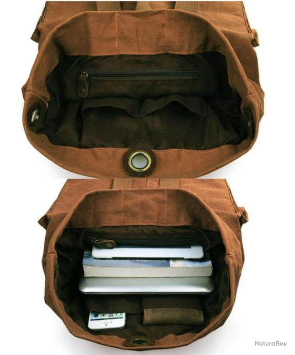 2 en 1: Ce sac en Canvas garniture en cuir est unique. Style « nomade », il peut utiliser comme sac à dos et sac de Voyage. Sangles réglables, deux grandes poches latérales, zippée à la centrale avec un fermoir en crochet. Poignées de sac en cuir, doublé avec du tissu résistant. Très pratique avec une petite poche zippée et des compartiments supplémentaires à l’intérieur pour le portefeuille et téléphone portable.