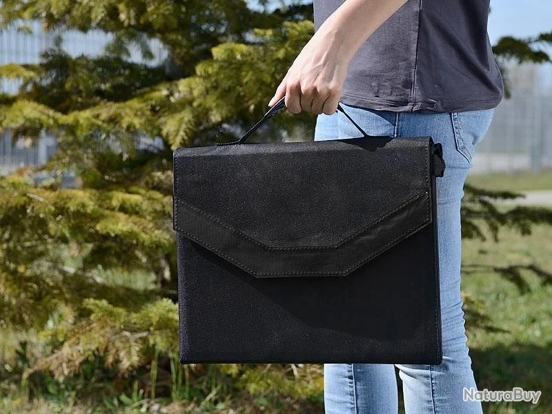 Utilisez l’énergie du soleil pour produire de l’électricité où que vous soyez ! Ce panneau solaire pliable est conçu pour se transporter facilement. Que ce soit dans le jardin, en camping ou même sur un bateau – utilisez-le partout où il n’y a pas de prise. La collecte d’énergie se fait en toute simplicité : il suffit de connecter le panneau à un régulateur de charge ou à une batterie à l’aide d’un câble dénudé, d’une fiche creuse ou d’un connecteur Anderson.