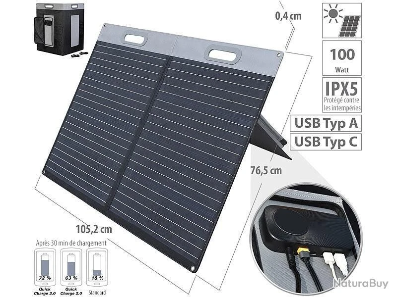 Le panneau solaire pliable avec cellules solaires monocristallines convertit l’énergie solaire en électricité ! Pliable et compact, il se prête particulièrement à une utilisation dans le jardin, sur un camping-car, etc.