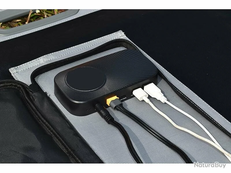 Interface régulateur de charge : 2 ports USB-A, 1 port USB-C, 1 XT60, 1 connecteur creux
