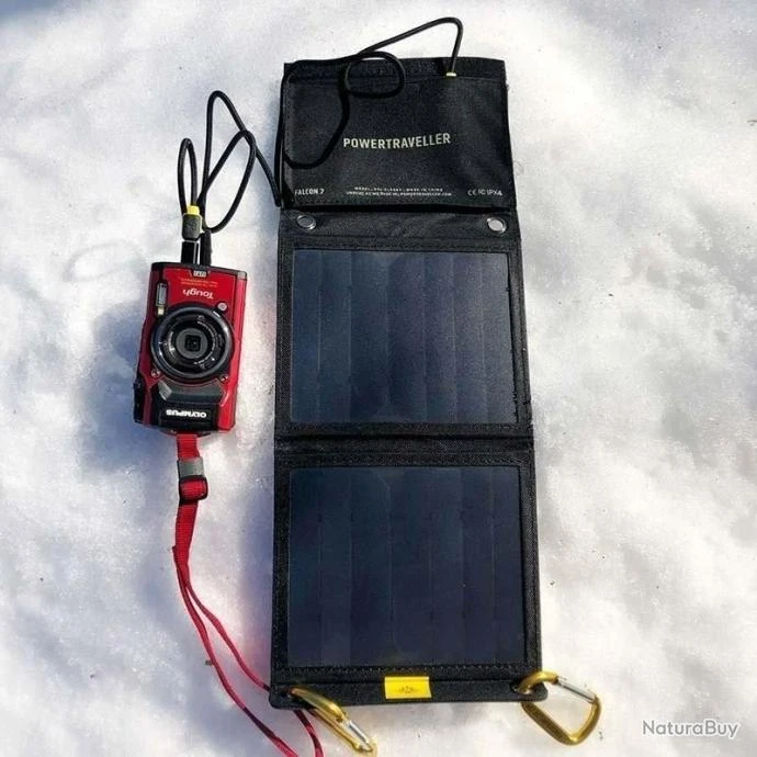 PANNEAU SOLAIRE PLIABLE FALCON 7 / POWER BANK AVEC MOUSQUETON ET ADAPTATEUR USB-C