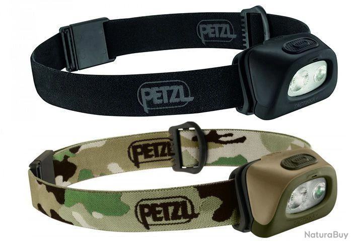 Lampe frontale Petzl Tactikka + à led, éclairage blanc et rouge, fonctionna à pile LR03. Coloris noir ou camo.