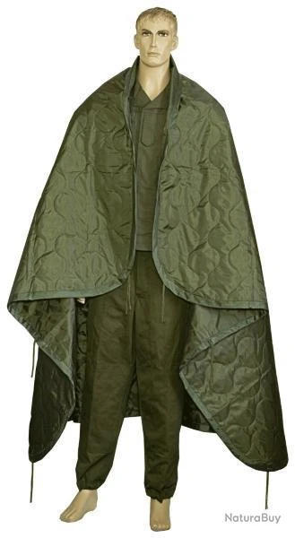 PONCHO LINER / COURTEPOINTE / COUVERTURE MATELASSEE 210 X 150 CM VERT OLIVE