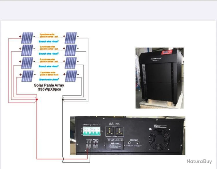Nous vendons un ensemble complet 15 kwatts pour clim 5000btu ou alors poste a souder a l arc …..qui comprend 3 panneaux solaires Mono cristallin les meilleur du marché 355WATTS 457 wc chacun Mesure 1 m sur deux donc 6m² de panneaux solaires peut être installer sur un toit sur un mur ou alors directement au sol avec ou sans dalle béton un contrôleur solaire pour réguler la charge des batteries et arrêter de recharger les batteries lorsque celles-ci sont pleines un onduleur qui permet d’alimenter jusqu’à 10 frigo avec congélateur simultanément 10 Téléviseur couleur de 60 cm et 50 ampoules et même capable d’alimenter une clim de 5000btu Des batteries gel 12 V 140 Amp chaque batterie à une puissance de 1680 W comme nous avons 2 batterie pour du 24 V la puissance totale pour la nuit fait 3?360 watts Le système vous est livrée montée est prêt pour l’emploi il est monté dans une structure métallique ou les batteries sont fixés ainsi que des roulettes pour le déplacement l’onduleur est fixé sur la structure le contrôleur de charge est livrée montée est équipé de ses cables il ne vous reste plus qu’à placer les panneaux solaires dans votre jardin est raccordé 2 fils pour que le système fonctionne avec les panneaux solaires qui sont livrés avec l’onduleur Notre onduleur est également équipé d’un chargeur de batterie qui permet de le recharger à partir d’un groupe ou tout autre source d’énergie