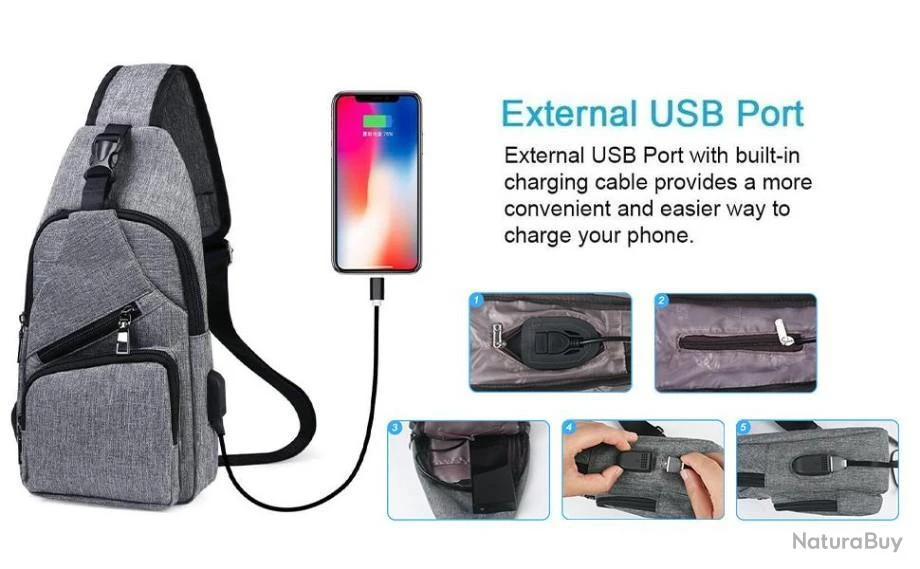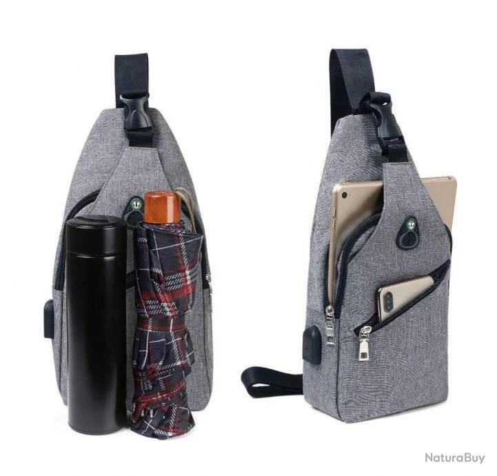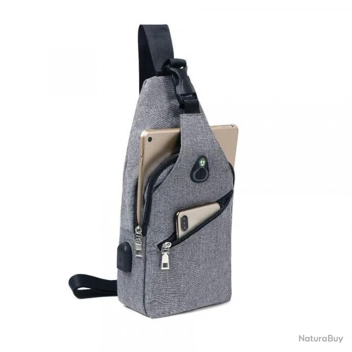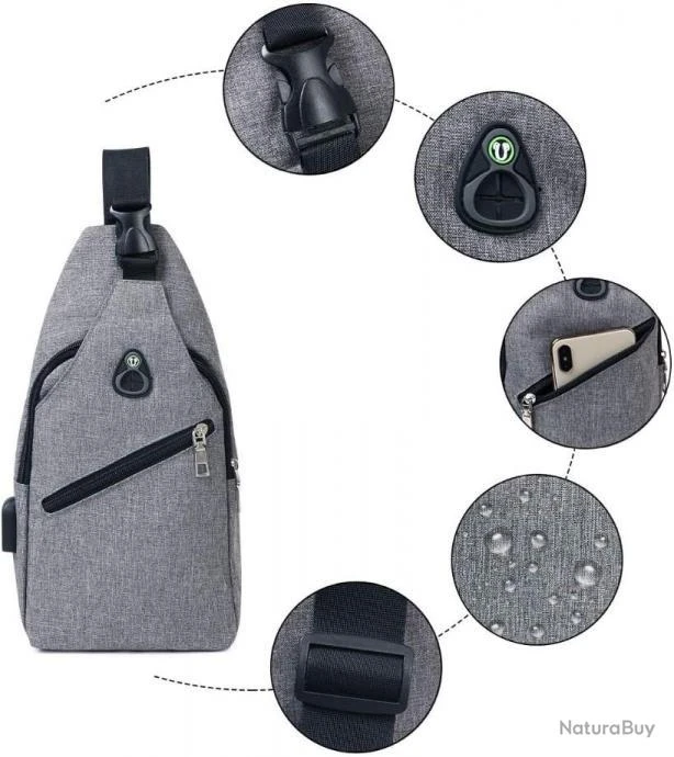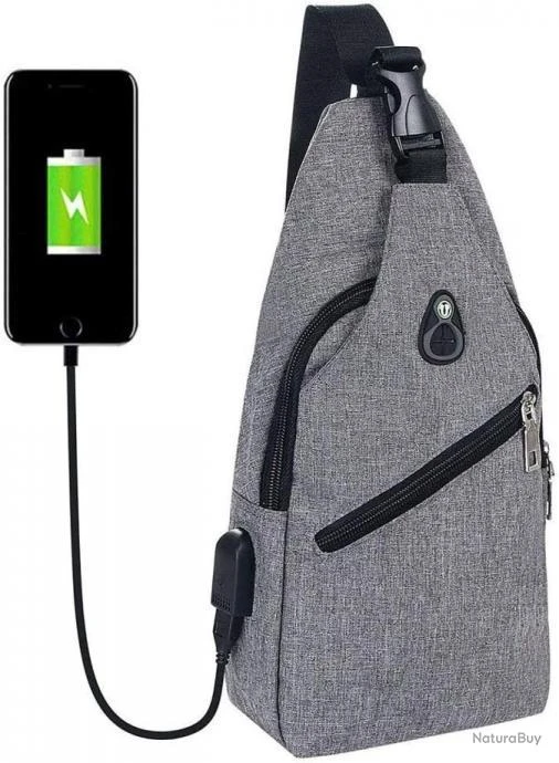 Sac à Dos Bandouliere Sacoche Homme Chargement USB Vélo Course Pêche Camping Randonnée Voyage Gris