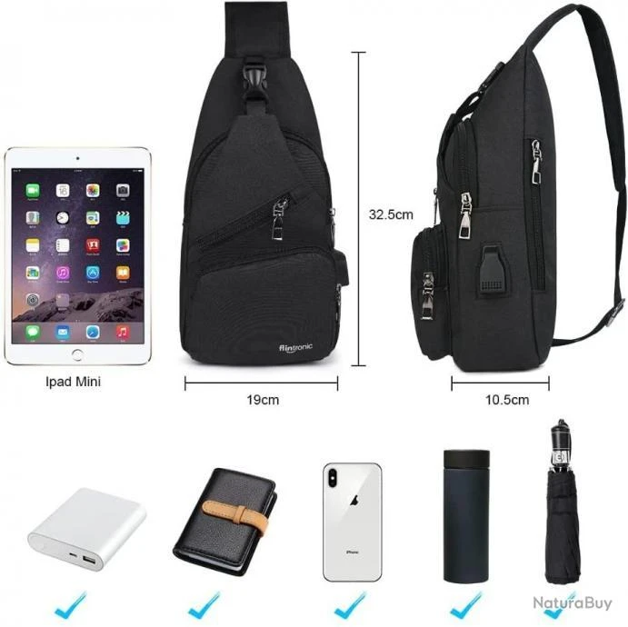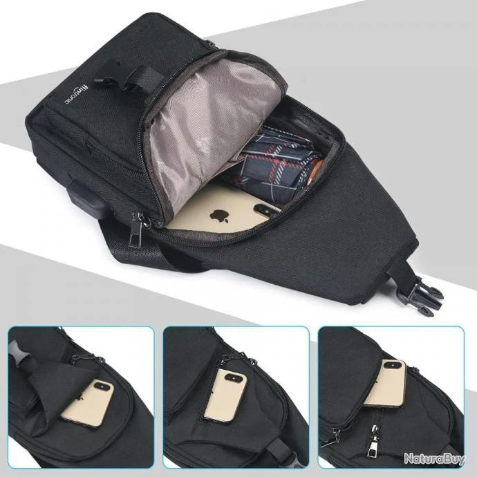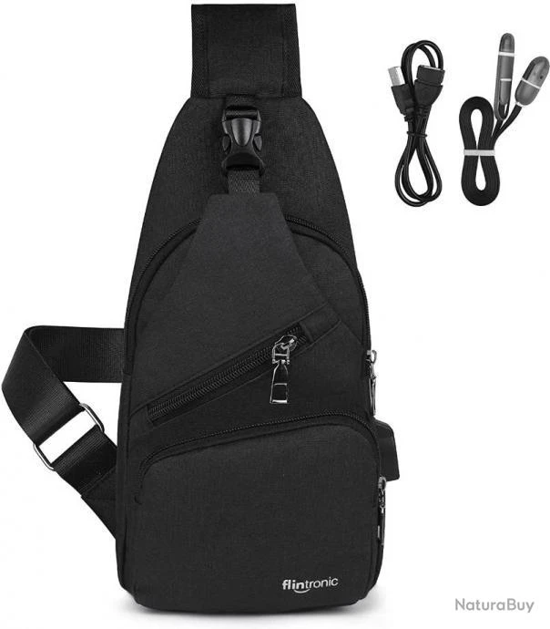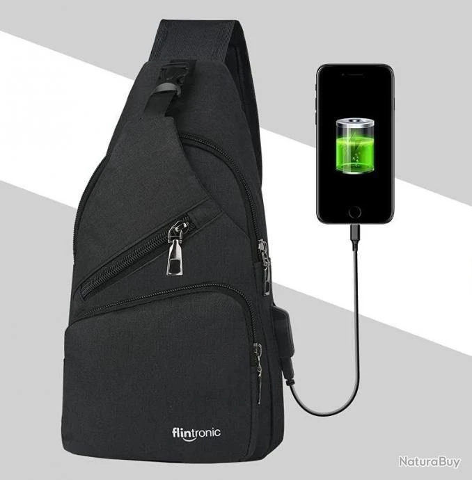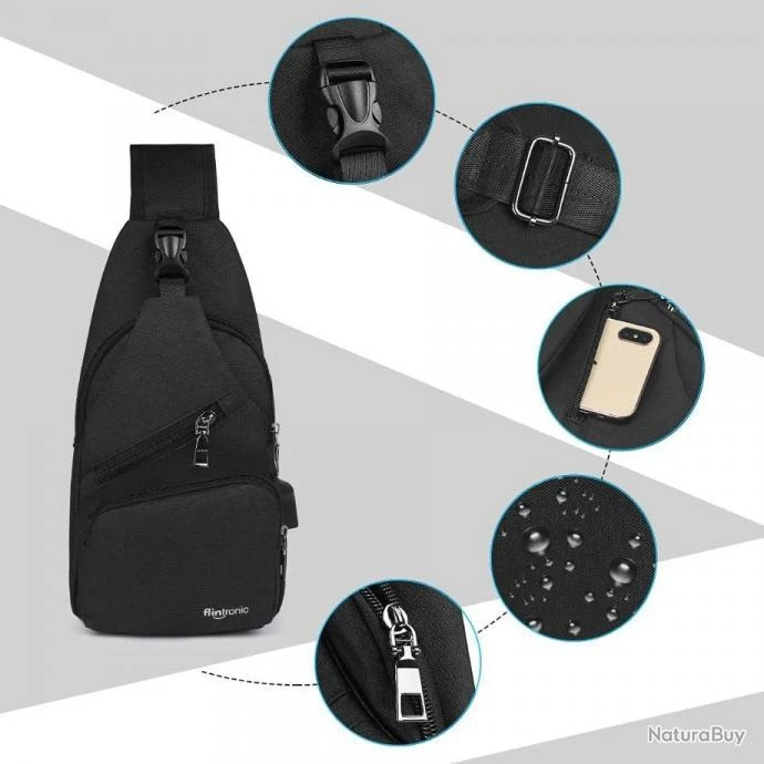 Sac à Dos Bandouliere Sacoche Homme Chargement USB Vélo Course Pêche Camping Randonnée Voyage Noir