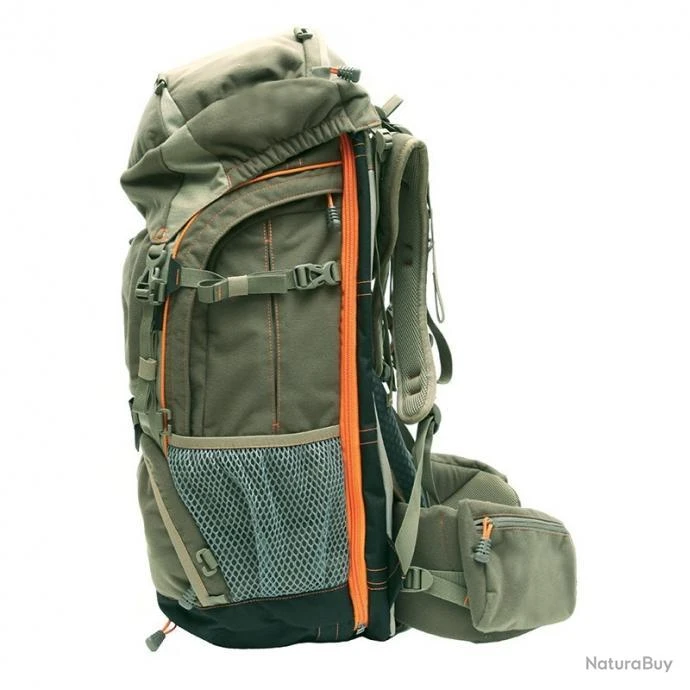 Il conjugue efficacité de portage avec des charges idéalement réparties, fonctionnalité avec ses attaches spéciales armes à feu ou arc, son ouverture variable pour aider aide au chargement, son accès direct dans la partie basse du sac pour éviter de le vider pour récupérer un objet situé au fond.