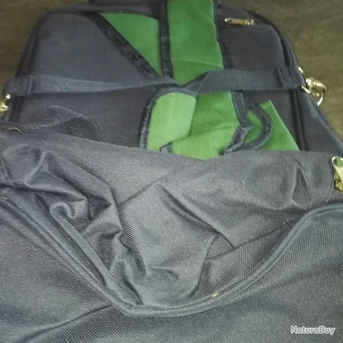Vends sac à dos de couleur vert foncé et bleu foncé à 2 niveaux.Dimension 60x31x27+/-