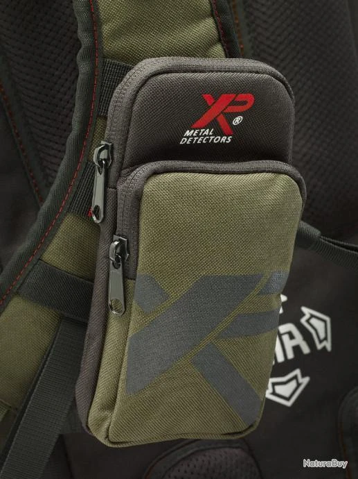 Différents compartiments ont été spécialement pensés pour recevoir les accessoires de détection . Ainsi le pinpointer , le casque , piochon ou encore la telecommande XP/ORX ont un emplacement dédié ou ils seront stockés sans risque . Le smartphone également sera en sécurité dans sa poche de rangement.