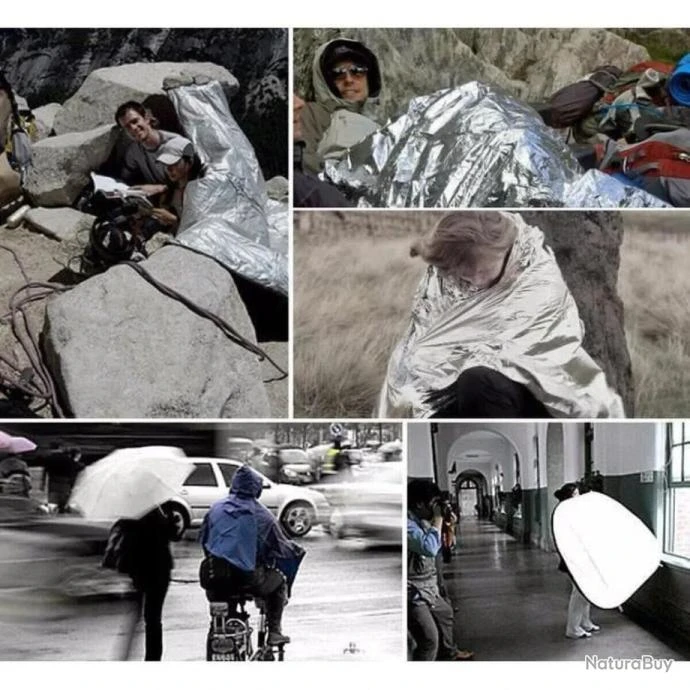 Couverture d’urgence, sac de couchage, couverture de pique-nique, élément essentiel pour les grimpeurs, les alpinises et les marcheurs. Purpose Multi-usages et: couverture d’urgence, sac de couchage, couverture de pique-nique, élément essentiel pour les grimpeurs, les alpinistes et les marcheurs.