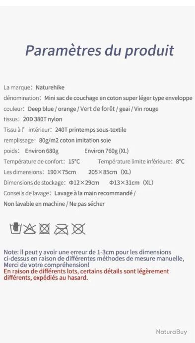 Sac de Couchage en Coton Duvet Ultraleger LW180 pour Randonnee Plein Air Camping