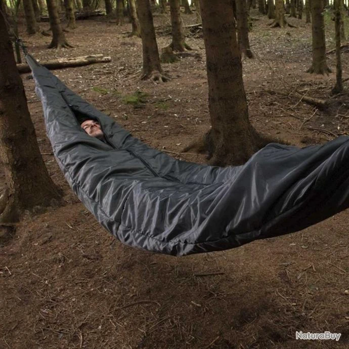 - Atouts: Une solution novatrice pour bien s’isoler du vent et garder la chaleur dans son hamac, il s’agit d’un duvet en forme de cocon fermé d’un zip intégral sur le dessus qui vient s’adapter sur un hamac (vendu séparément).