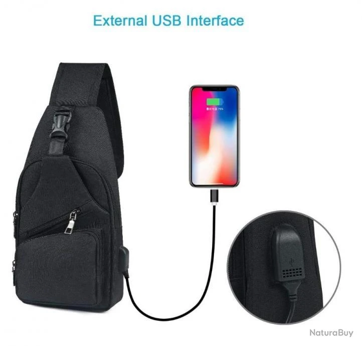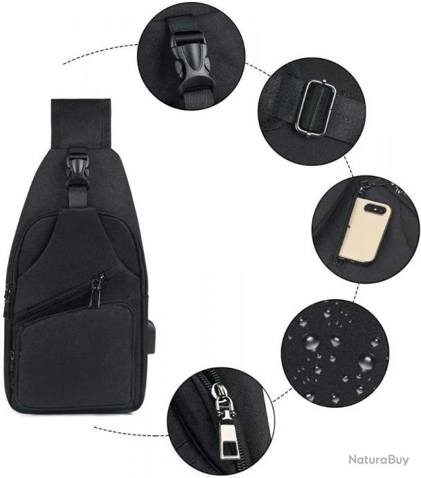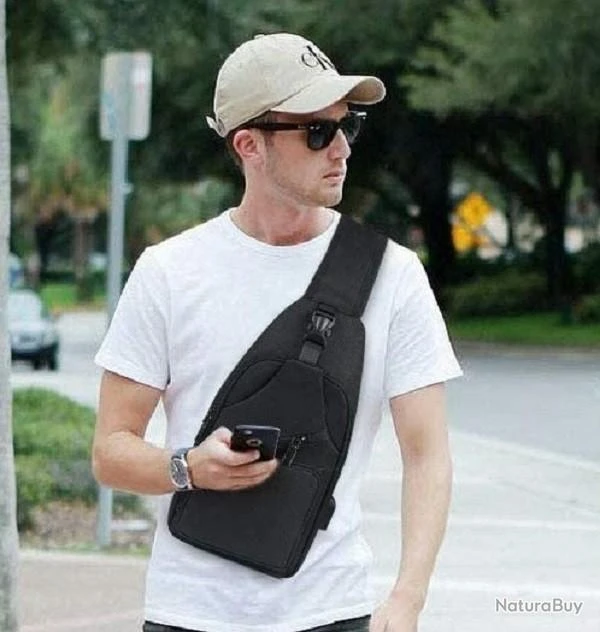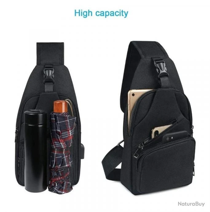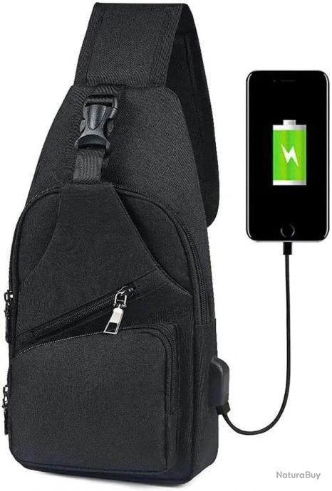 Sac à Dos Bandouliere Sacoche Homme Chargement USB Vélo Course Pêche Camping Randonnée Voyage Noir
