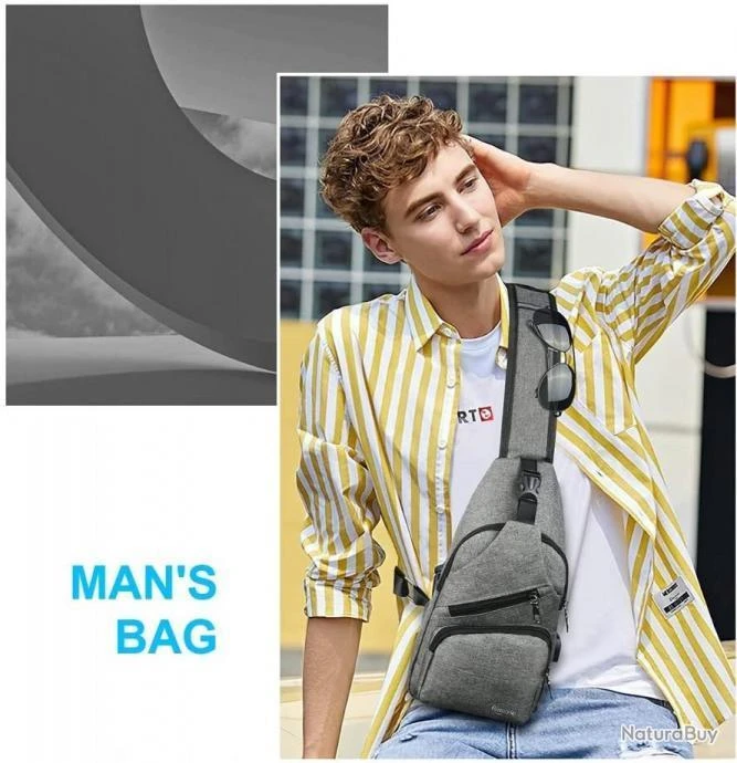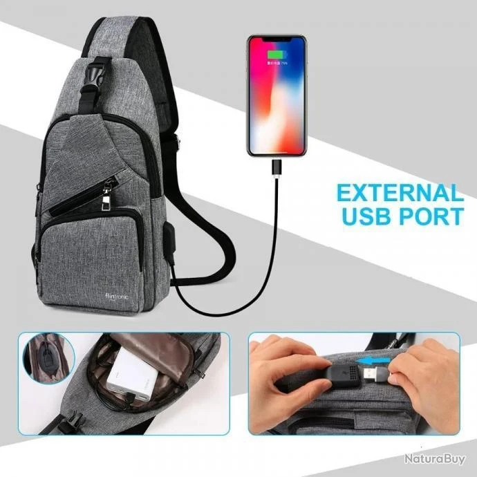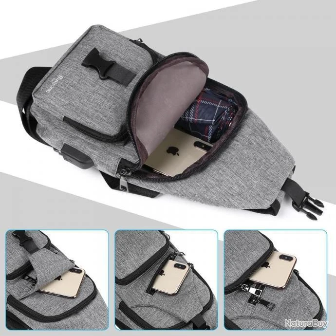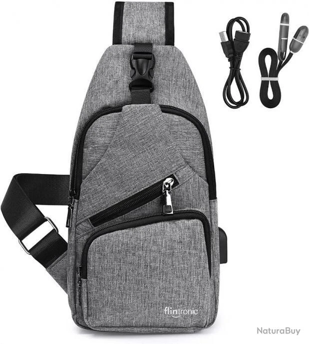 Sac à Dos Bandouliere Sacoche Homme Chargement USB Vélo Course Pêche Camping Randonnée Voyage Gris
