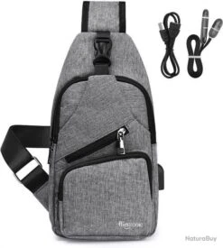 Sacoche Sac à Dos à Bandouliere Chargement USB Vélo Course Pêche Camping Randonnée Voyage Gris